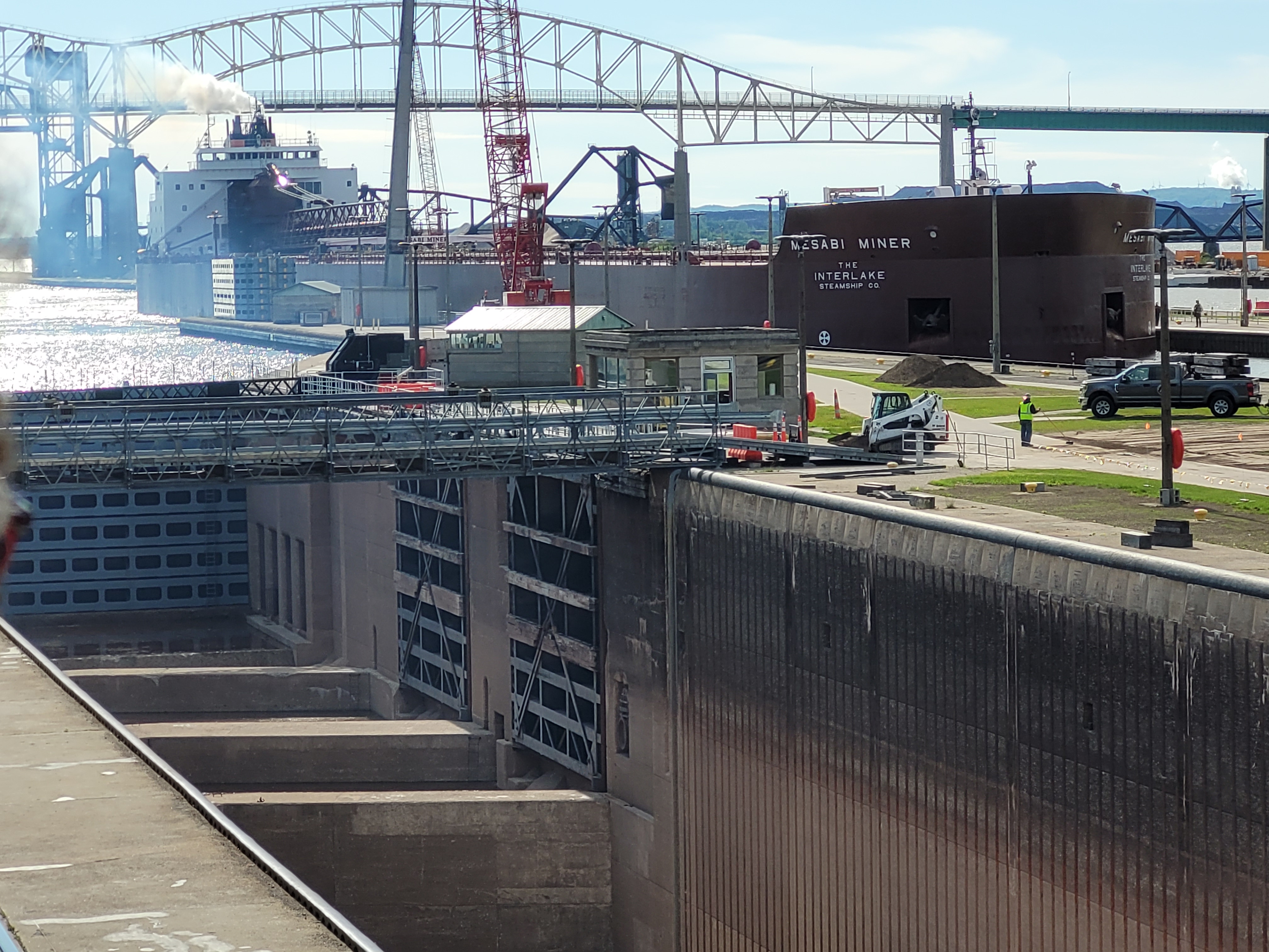MacArthur Lock empty for maintenance Mesabi Miner waiting to enter the Poe Lock