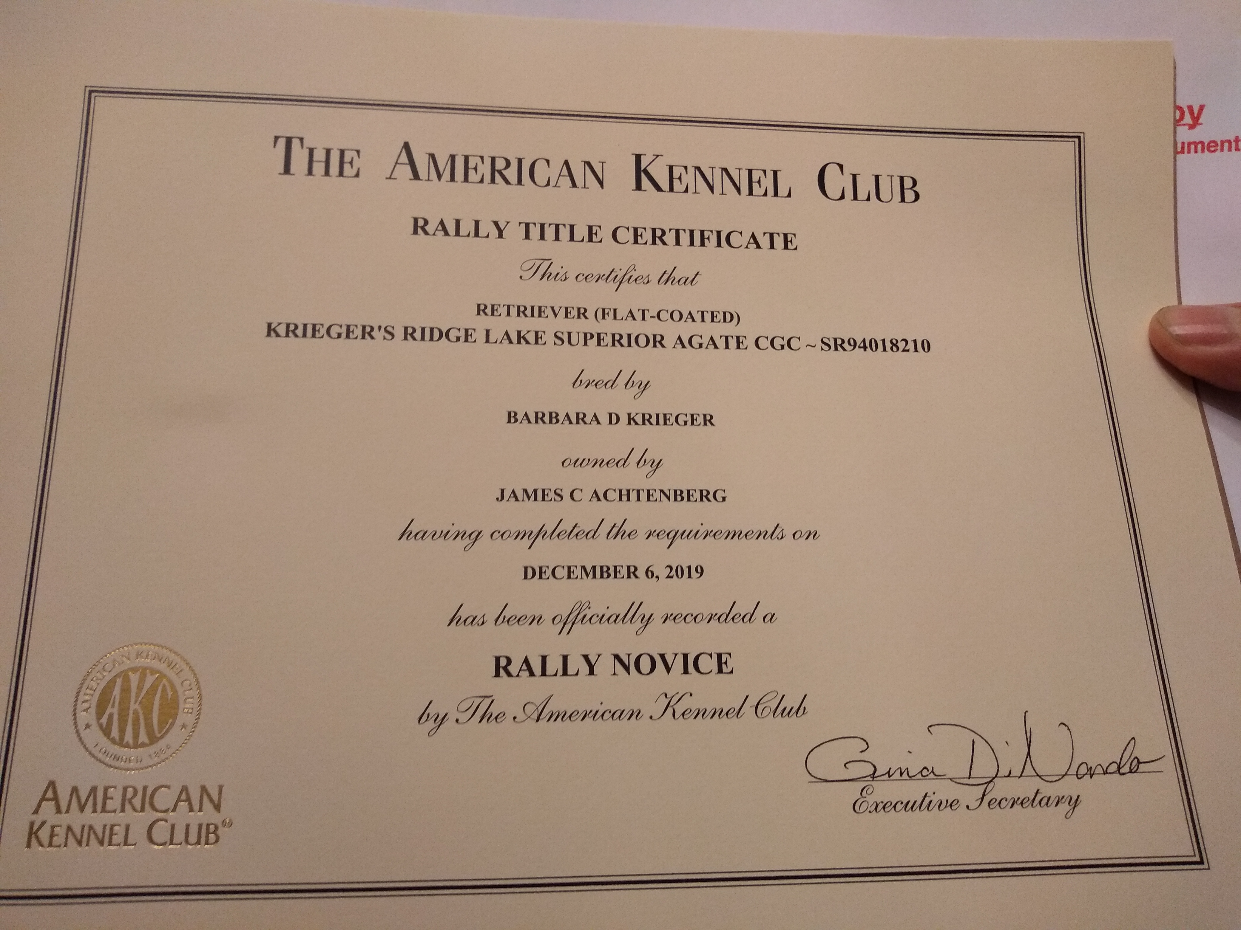 Agate earns her AKC Rally Novice Title