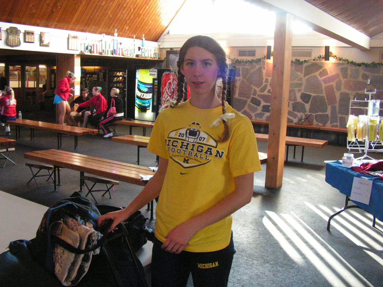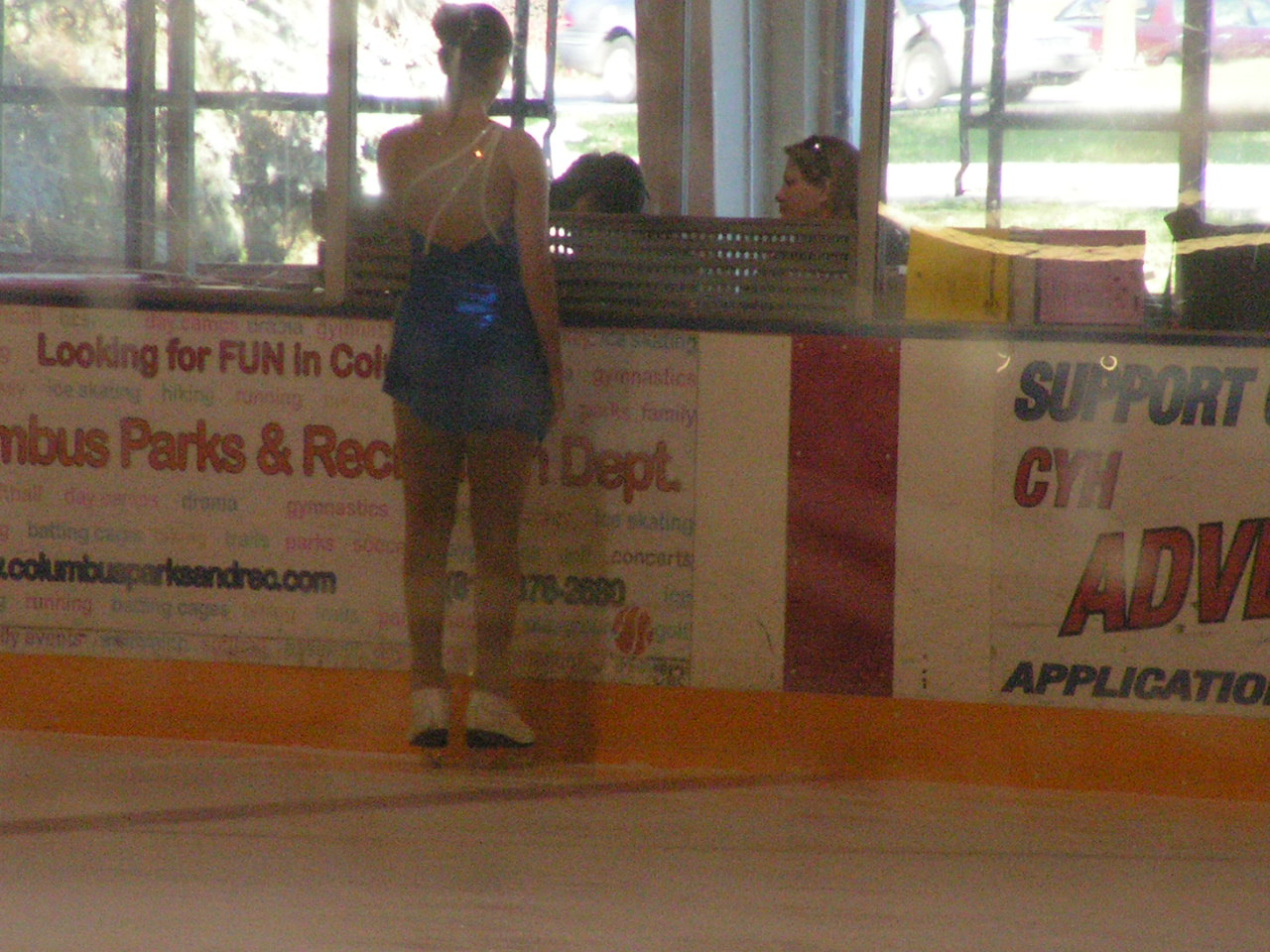 Connie arrives at the Lincoln Center rink in Columbus, IN just before the rest of the UM team