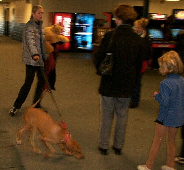 Yasa visits the Cube with a Rhodesian Ridgeback puppy.